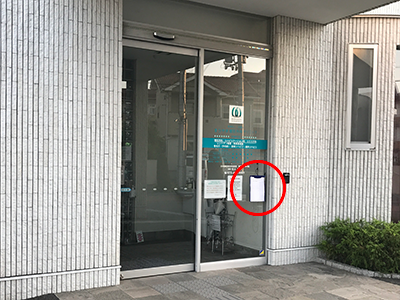 まつやま整形外科クリニックでは、午前の部(8:00頃~)、午後の部(12:30~)より、エントランスのドア前で、診療順番の受付用の記入ボードをご準備しています。