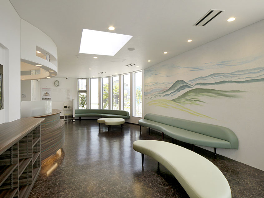 当院の受付です。待ち時間を快適に過ごしていただけるよう、配慮したつくりになっています。